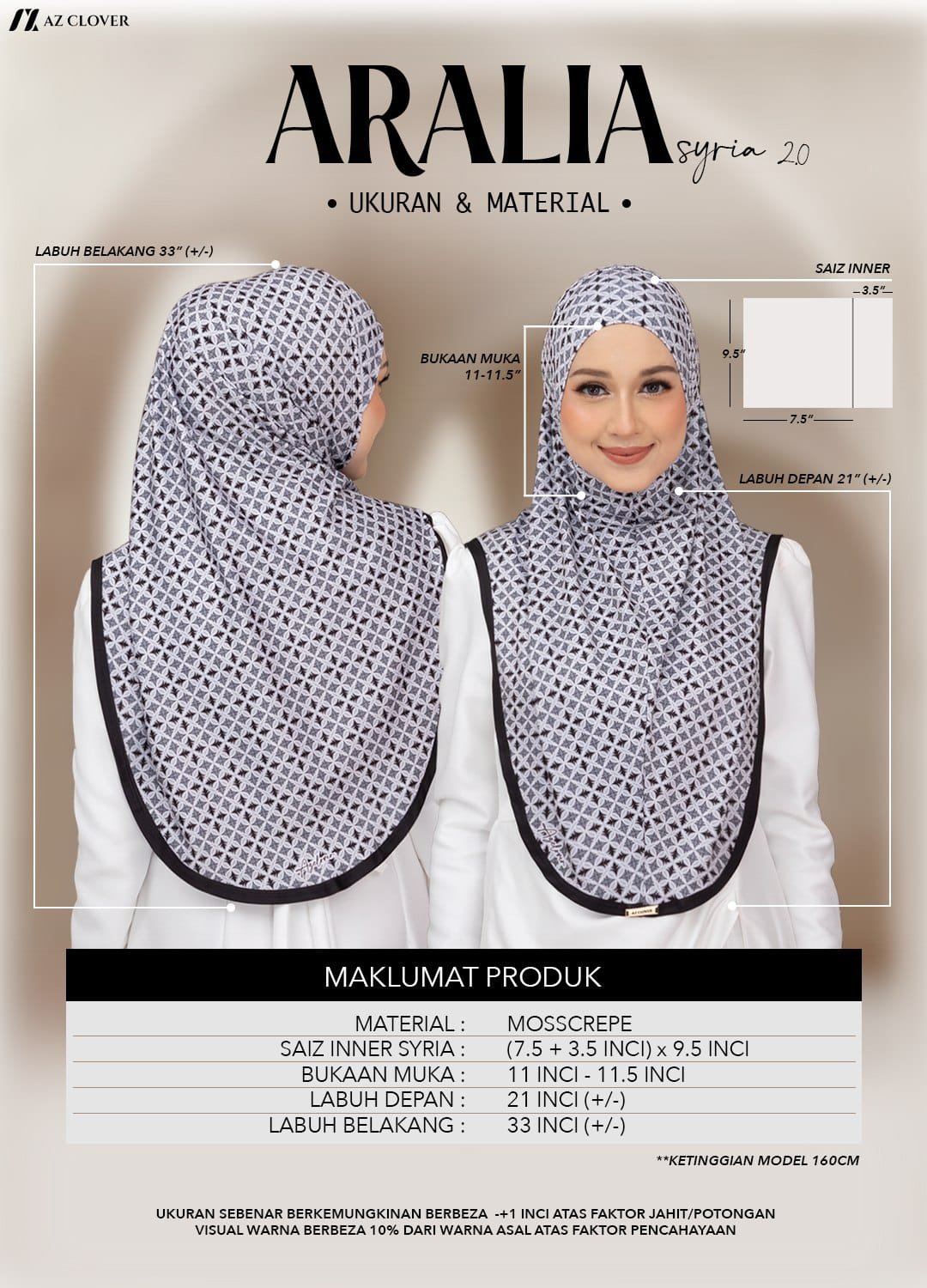 ⁃ Design Corak tudung sama seperti model pakai